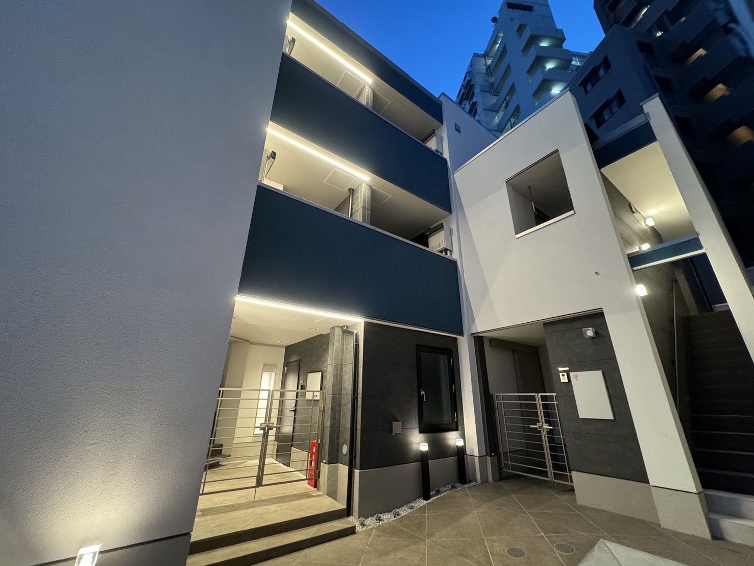照明計画においては、建物に高級感のあるイメージを醸成するように設計。入居者はもちろん、建物周辺を通行する方たちも安心・安全に帰宅できるような配慮をしています。 ぜひ、当社までお気軽にご相談ください。